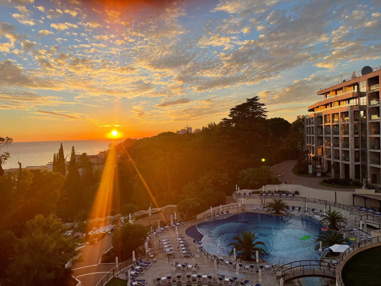 Swissotel Resort Сочи Камелия — роскошный пятизвездочный отель на берегу Черного моря с идеальным песчаным пляжем и открытым бассейном.