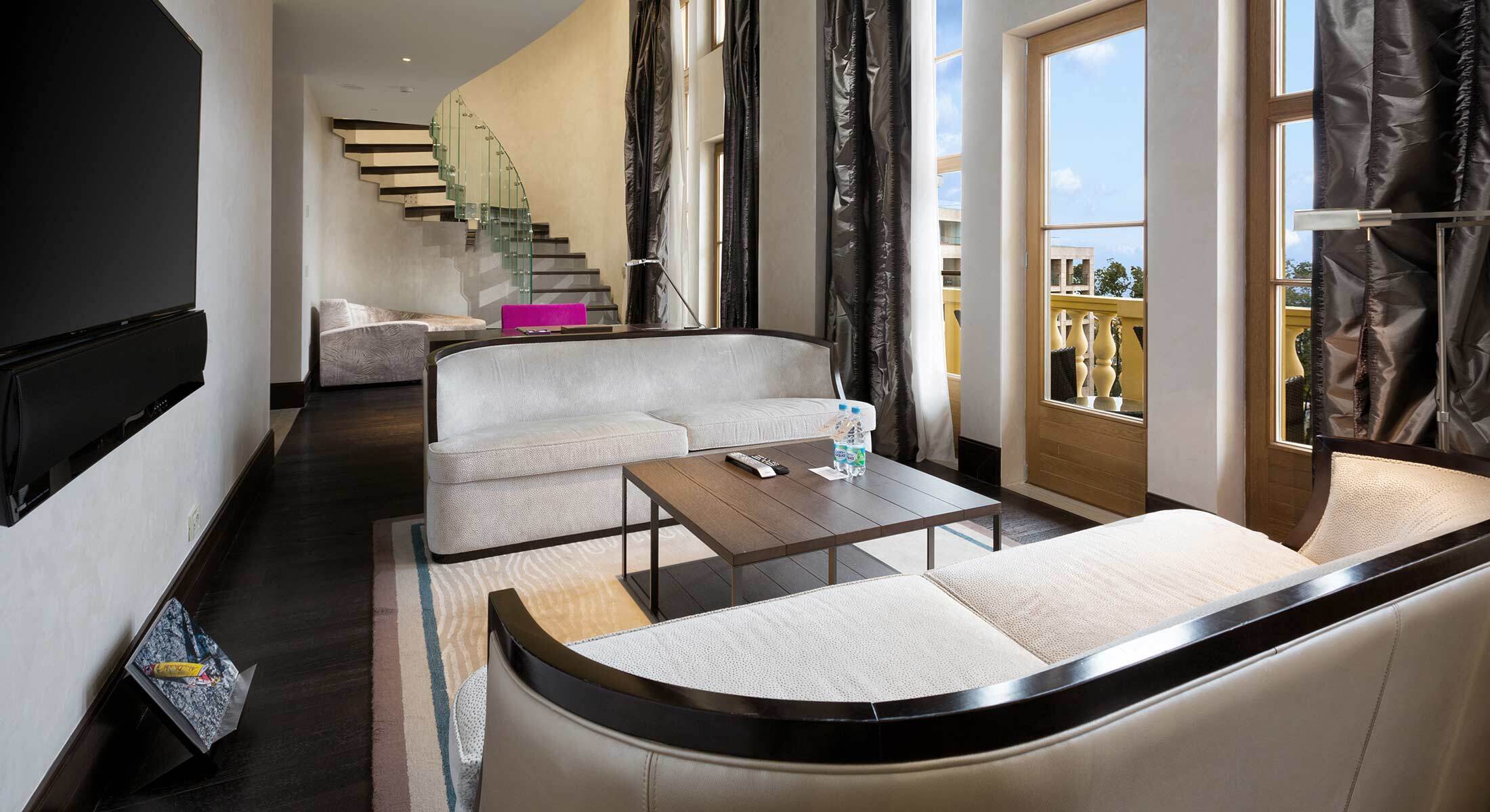 Отель располагается на семи гектарах зеленого парка, богатого цветущими деревьями и кустарниками. Номера отеля отличает простая геометрия, много естественного света, сочные и одновременно неброские цвета отделки, современные технологии, чистота, уют и комфорт.